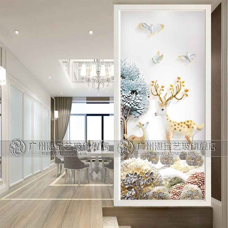 Art Glass Screen Aisle Gangguan Background Wall Cabinet Au Style Two Sides Carved Living Room Frosted Euphime Deer