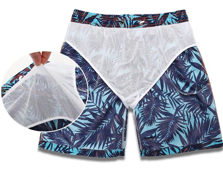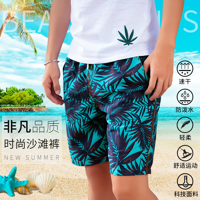 New leaf print beach pants men's quick-drying shorts lined five-point pants seaside vacation loose swimming trunks