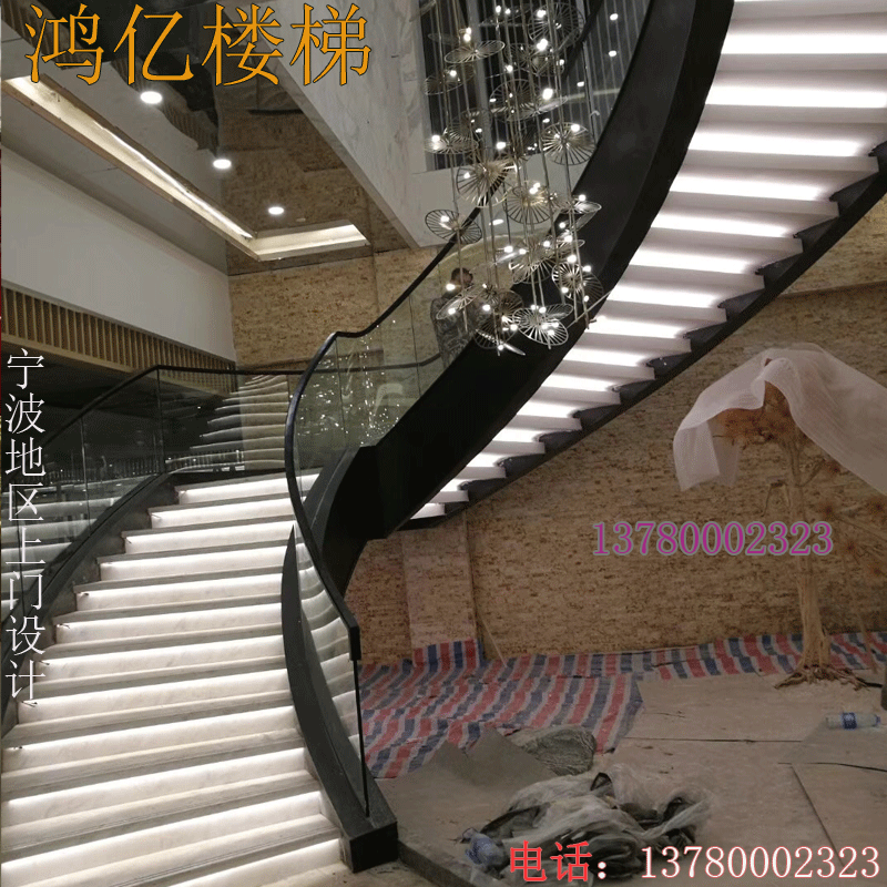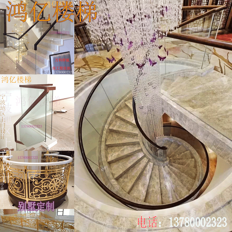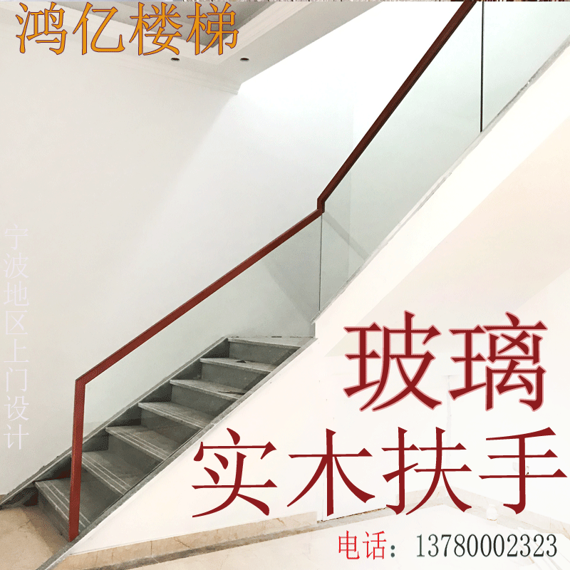 Chinese staircase glass guardrail Tempered glass handrail Wrought iron stainless steel solid wood card slot PVC stair sink