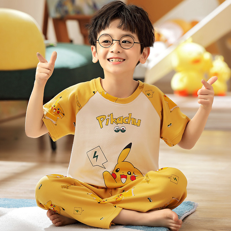 Boy's pajamas short sleeve trousers pure cotton summer boy children's children's thin summer summer cotton children's home clothing