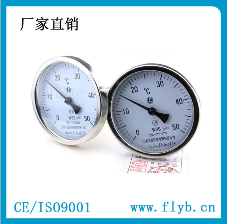 Shanghai Feilong WSS - 401 stainless steel bimetal thermometer axial industrial pointer measurement meter