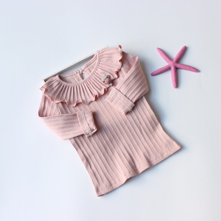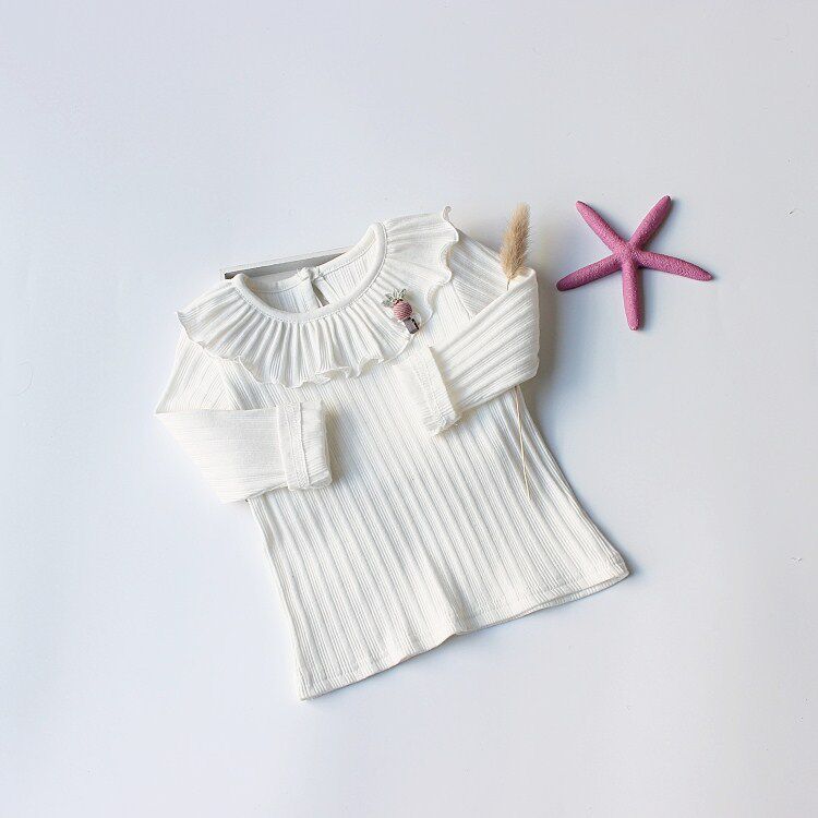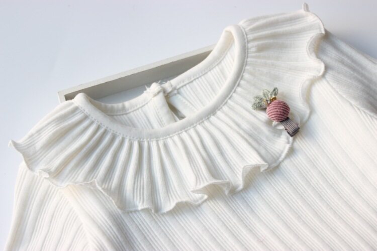 2022 0-3 years old girls spring new thread white with lotus leaf collar hairpin with long-sleeved bottoming shirt
