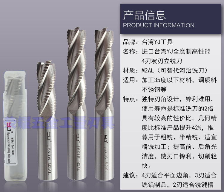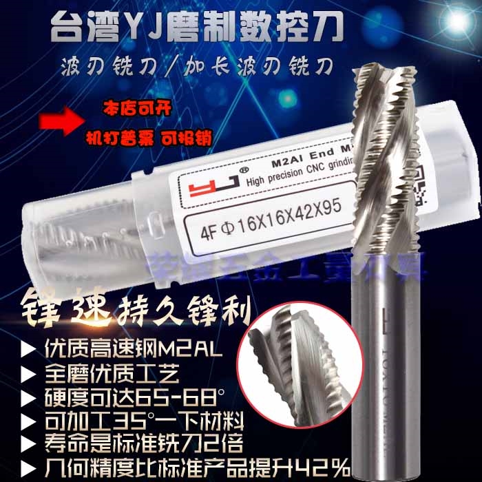 Taiwan imported YJ super hard high-speed steel coarse skin general length length 4-edge wave edge milling cutter 16 18 20 2225mm