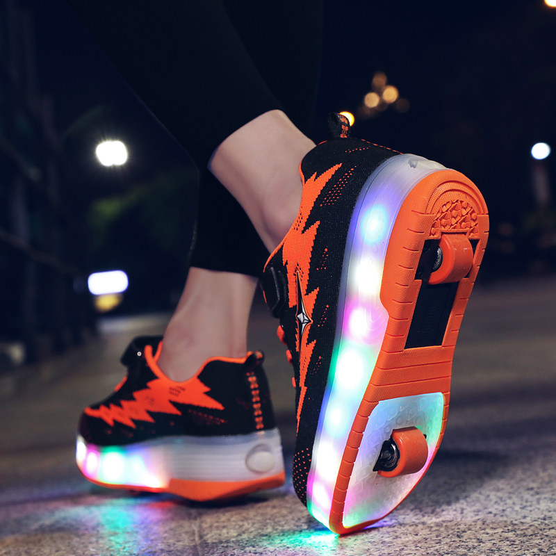 Runaway shoes students boys and girls double single wheel flashing lights pulley shoes adult children burst shoes with wings with wheels shoes