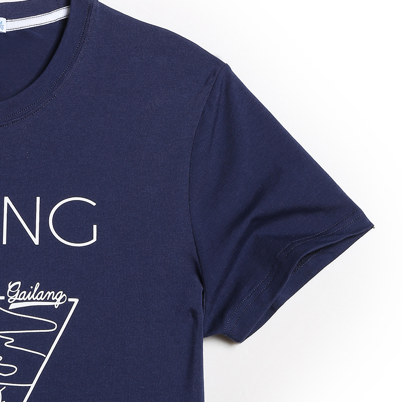Gailang holiday short-sleeved T-shirt men's cotton summer top Slim-fit round-neck underwear Solid color printed white and blue men's base shirt