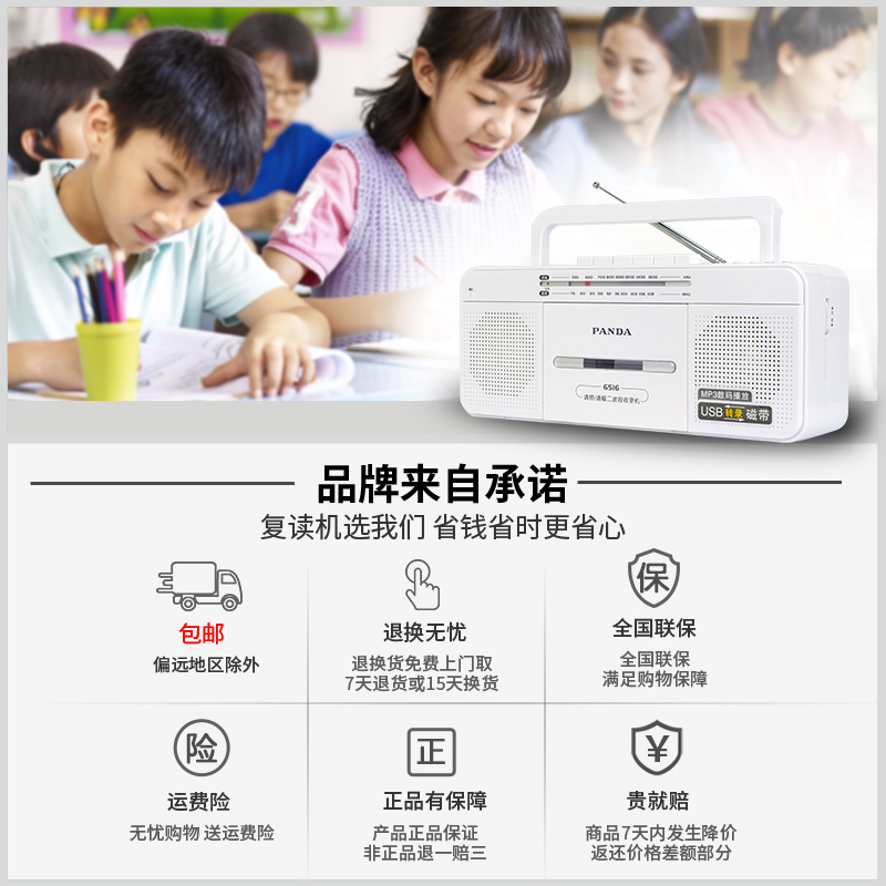 Panda Repeater Tape Machine Tape Drive English Learning Tape Recorder Elementary School Junior Student Player Walkman U Disk Player Put Tape Inclusion Single Play Cartridge Multifunctional 6516 F-336