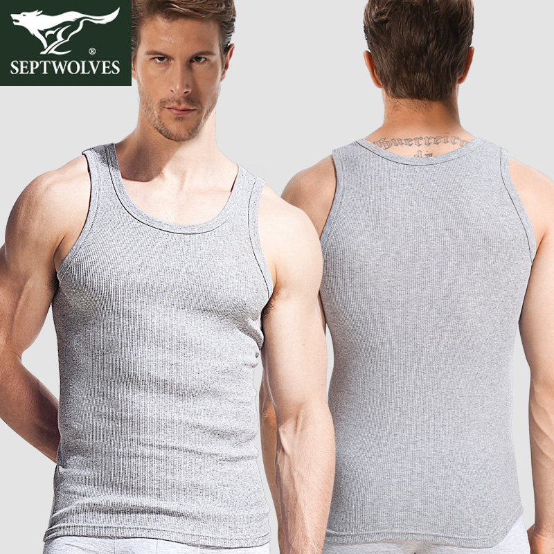 Seven Wolves Men's Vest Inside Pure Cotton Summer Tide Hurdle Sports Slats Bottom Sweatshirt 100% Full Cotton White Vest