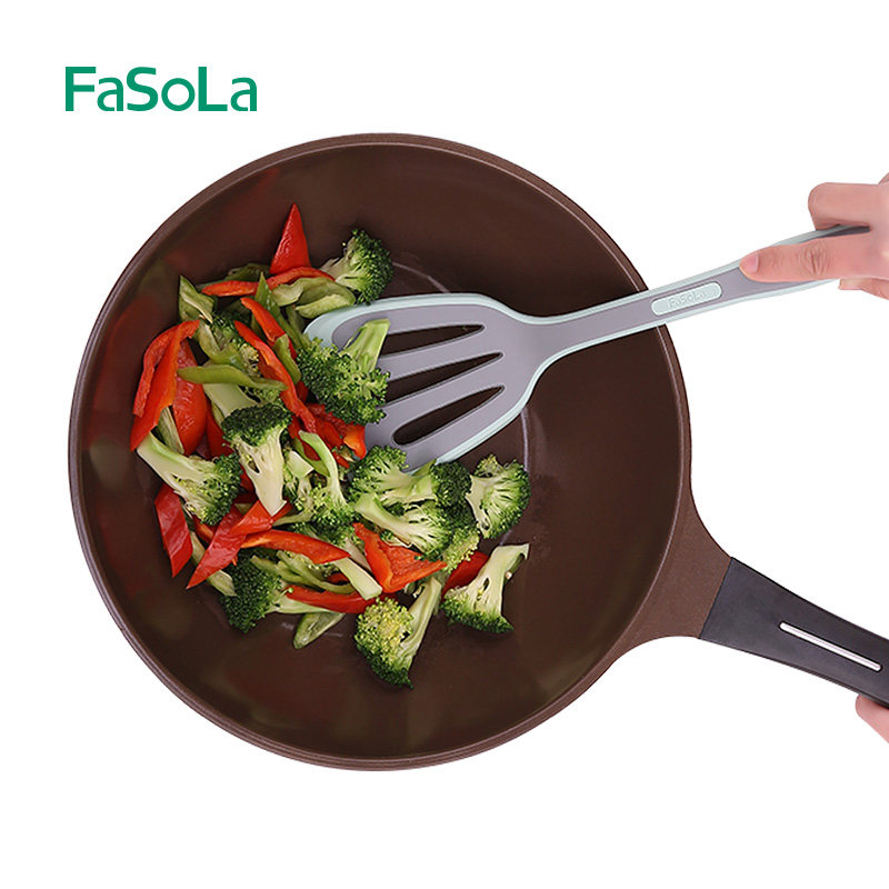 Nonstick pan with silicone spatula spoon Colander tuck high temperature resistant hole lou chan long-handled insulation anti-scalding nylon color block