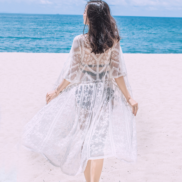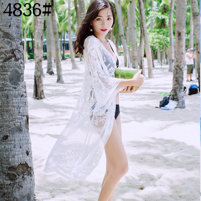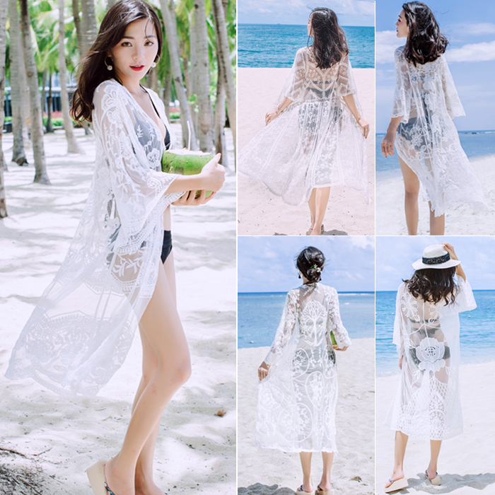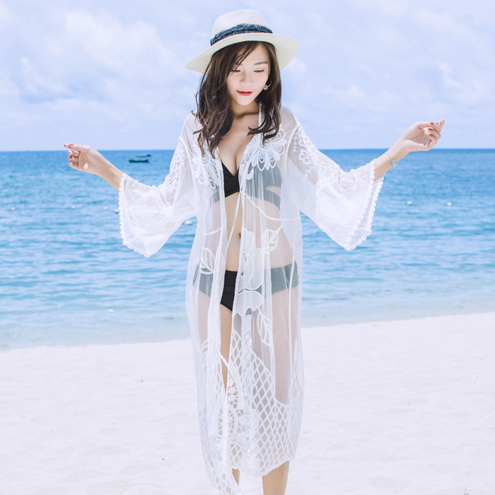 Madai Phuket seaside beach resort sexy long lace cutout bikini swimsuit over the blouse