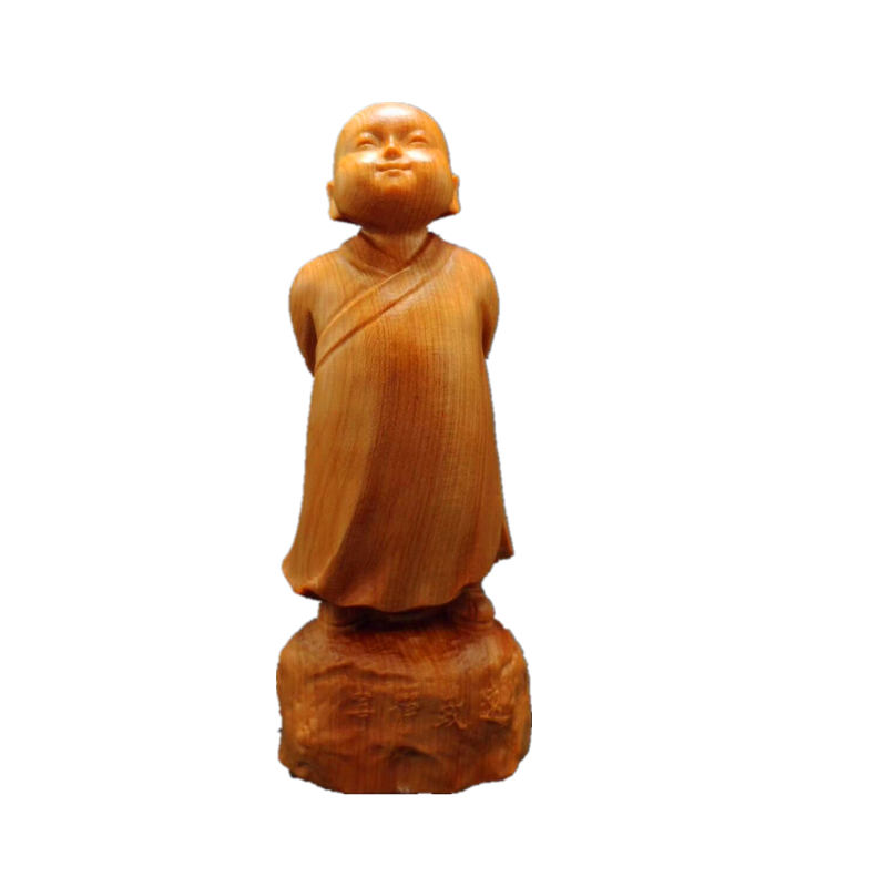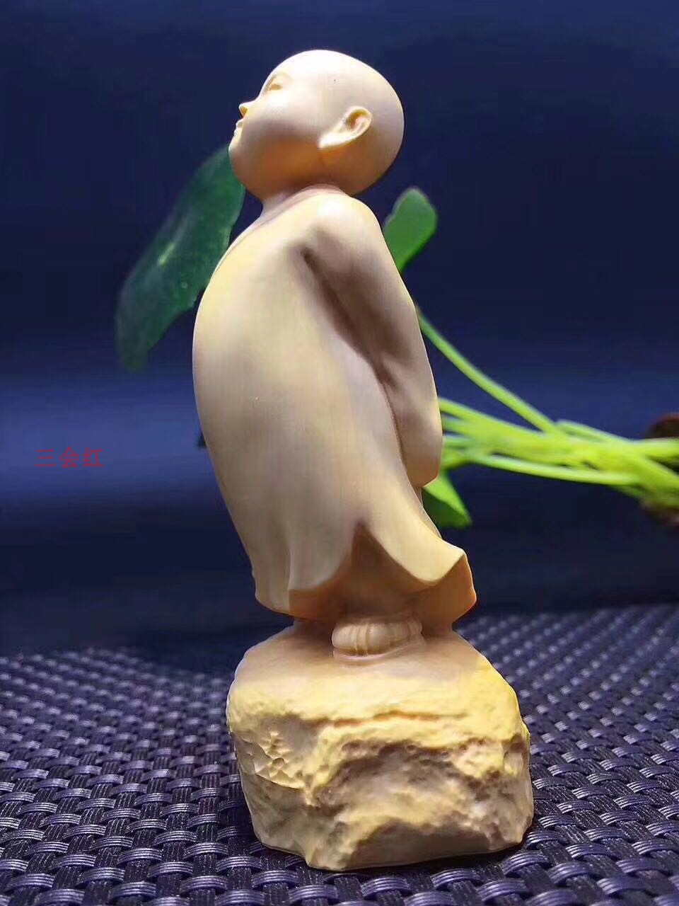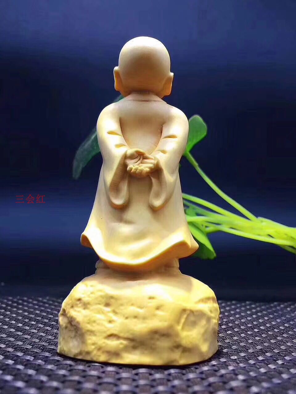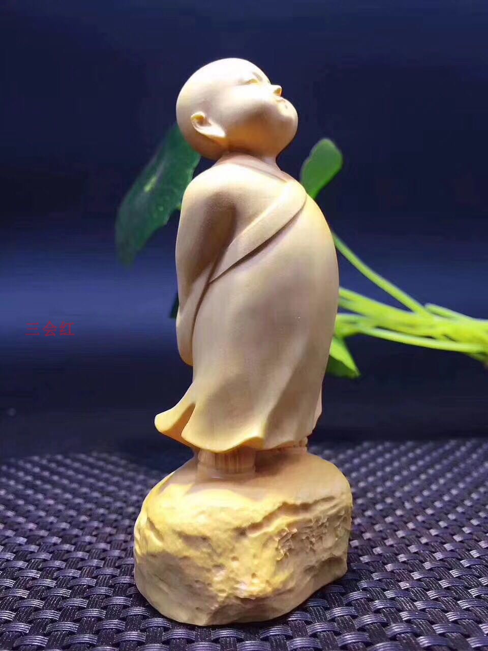 Cliff Berk Yellow Poplar Wood Carving small monk Pendulum Pieces Solid Wood Engraving Small Sandy Minning Stillness Far handlebar Decorative Craft Gift Hem
