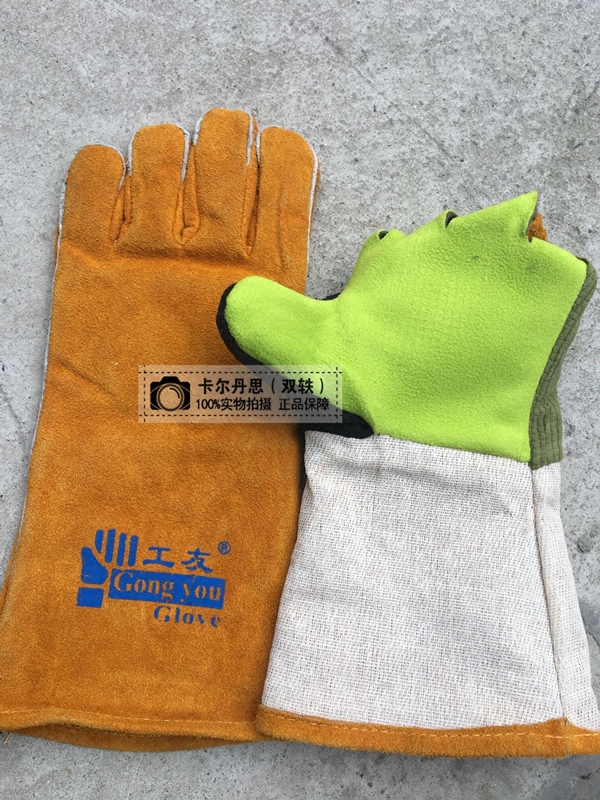 Worker brand double-layer high temperature resistant welding gloves cowhide heat insulation, fire protection, anti-hot gloves welder welding gas welding