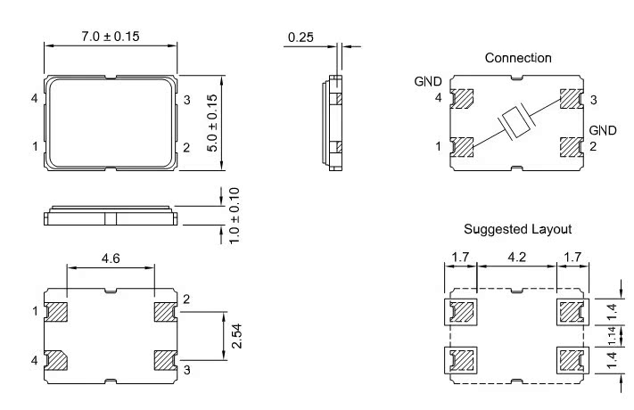 Passive patch crystal vibration 7050 18 432M 19 2M 22 1184M 22 579MHZ 4 feet 5*7