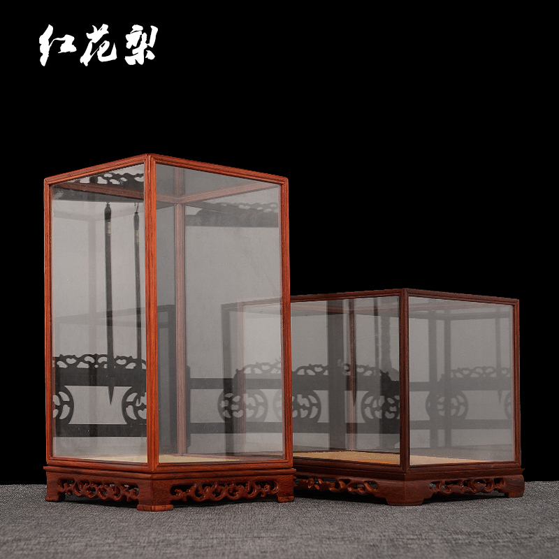 Mahogany glass dust cover Treasure cage box dust cover Buddha statue jade cover Glass cover ornaments crafts can be customized