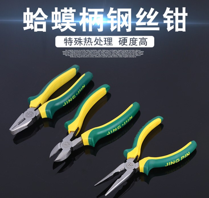 6 inch clam toad handle steel wire pliers 6 inch clam toad handle sharp mouth pliers 8 inch tiger leather handle steel wire pliers 8 inch tiger leather handle sharp mouth pliers
