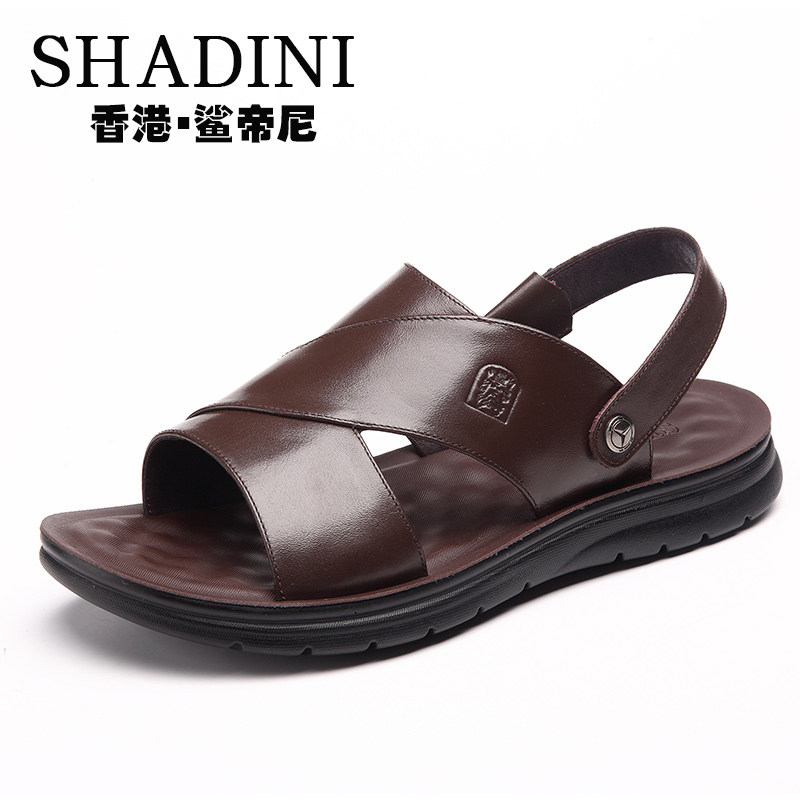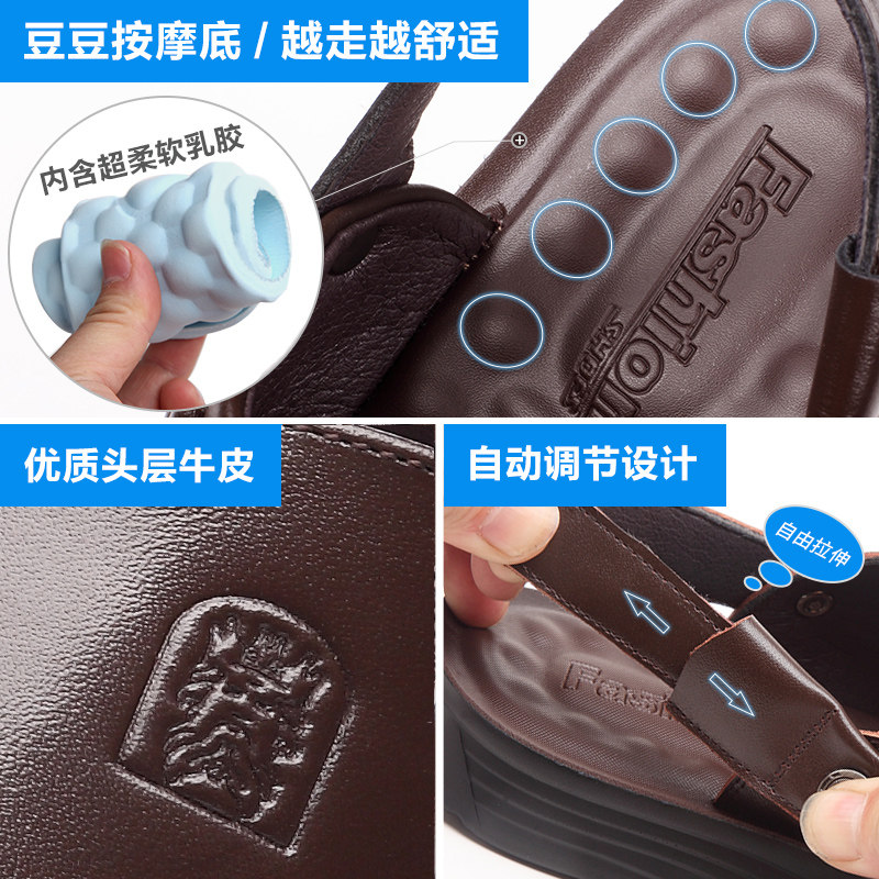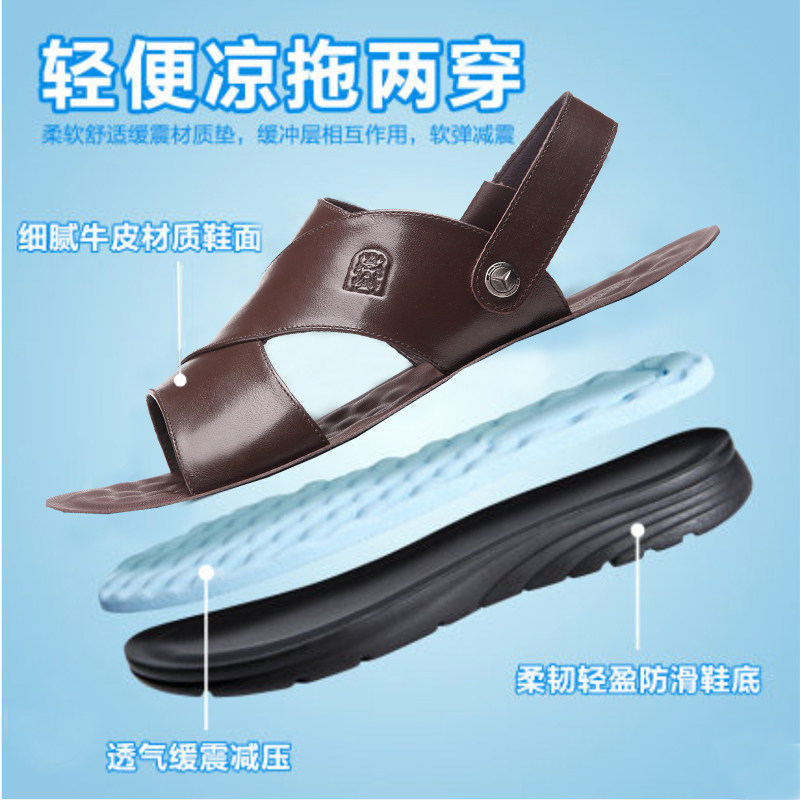 Sandal Boys Summer Dad Genuine Leather Outside Wearing Beach Shoes Middle Aged Non-slip Soft Bottom Large Size Size 48 Dual-use Old slippers