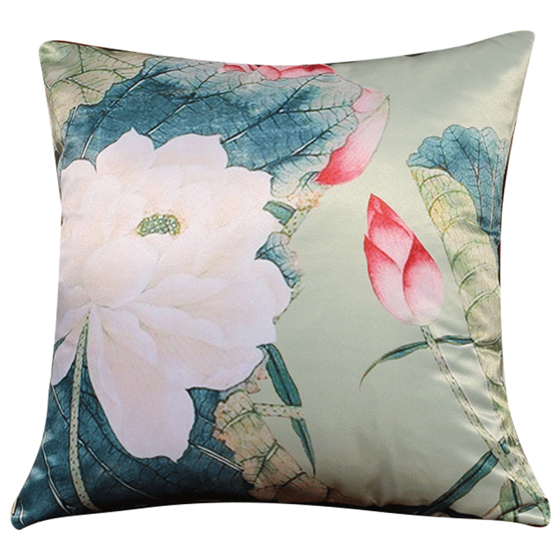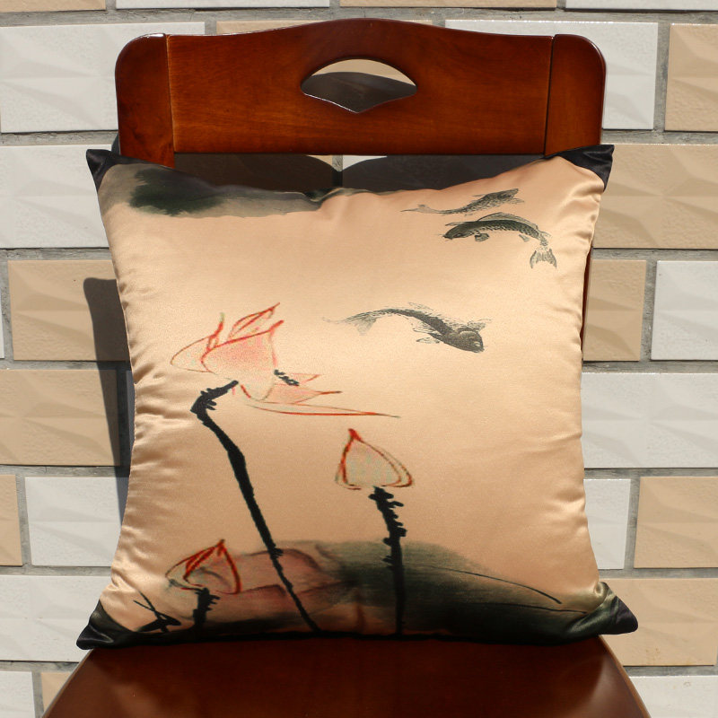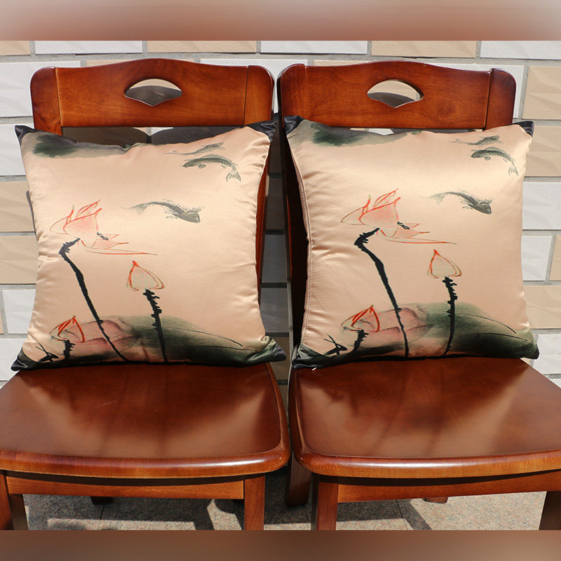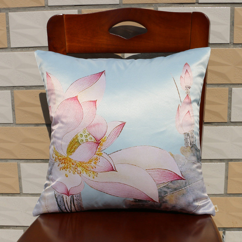 New Chinese Classical Silk Zen back cushions Pillow Red Wood Sofa Lean to Pillow Lotus backrest Chinese Wind Cloth Art