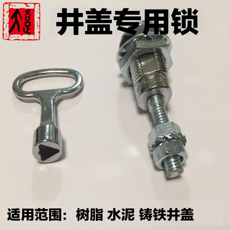 Promotion well cover lock anti-rust anti-theft shackle round square universal cast iron resin cement manhole cover lock key alloy