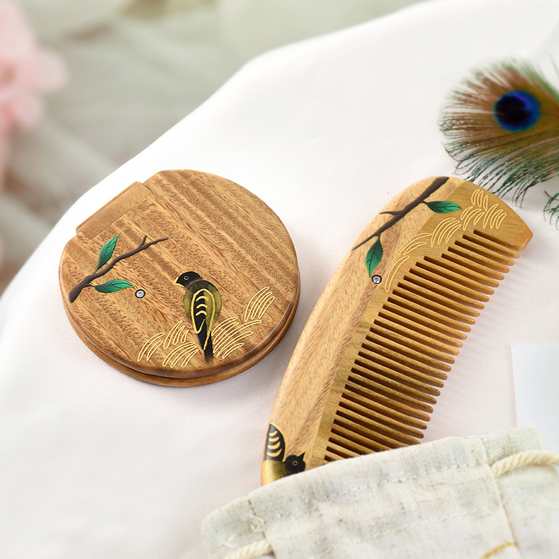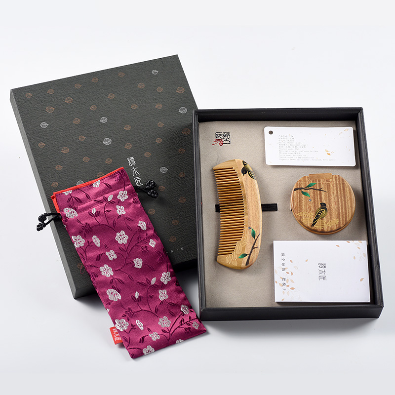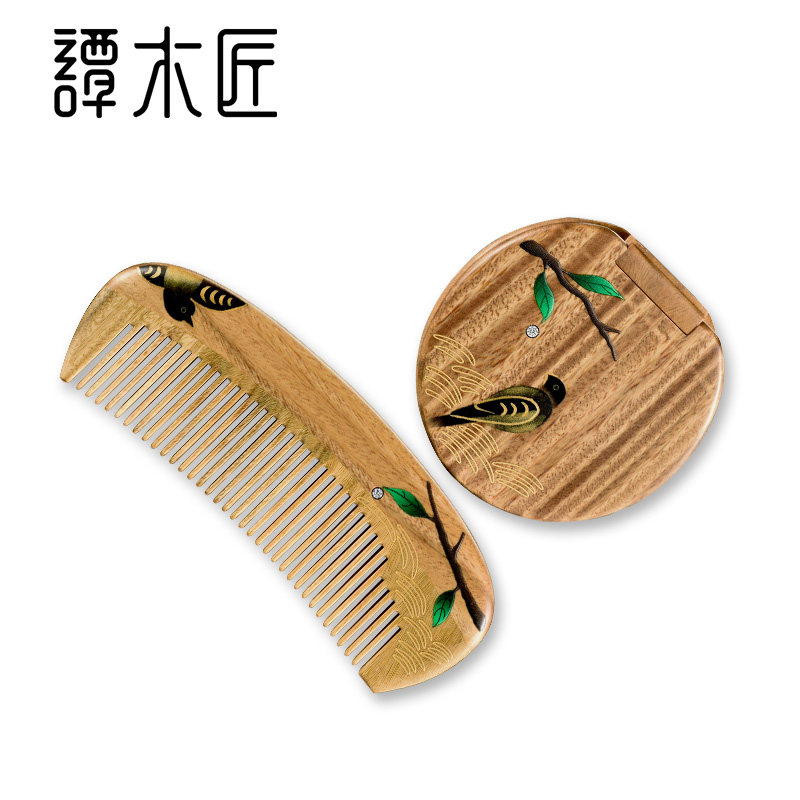 Tan Carpenter Gift Box That DewDrop L Jade Sandalwood Comb Mirror Comb Set Girlfriend Girl Creative Gift