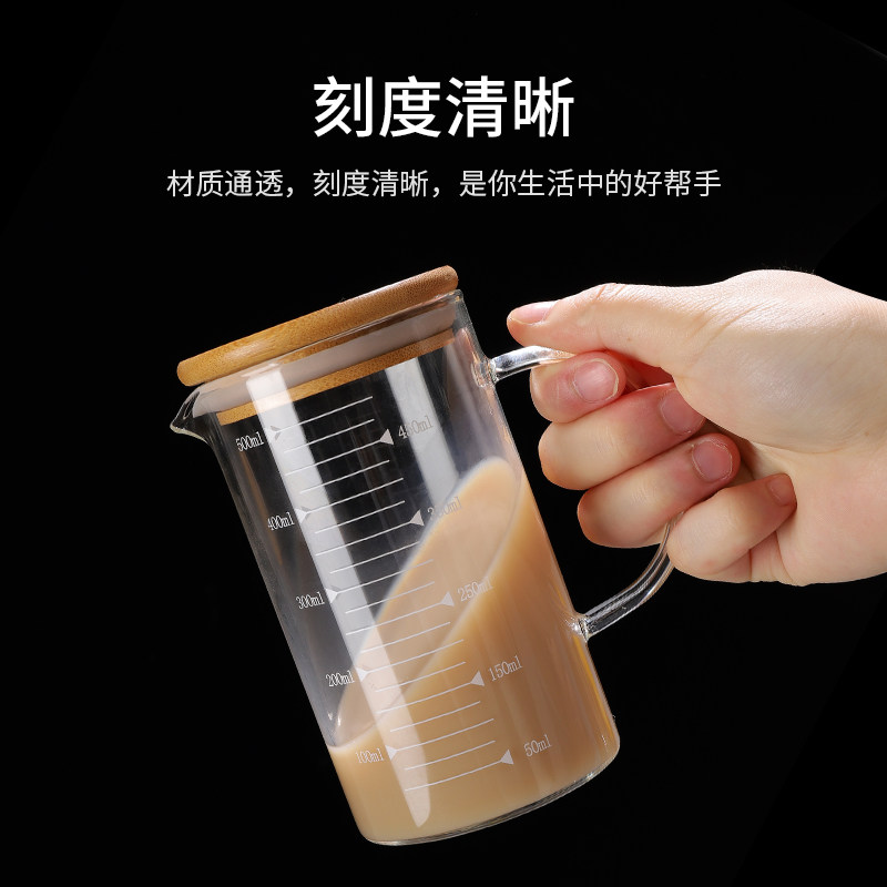 Glass measuring cup with scale high temperature resistant with handle milk tea shop MICROWAVE OVEN HOT MILK KITCHEN BAKING BEATEN EGG CONTAINER CUP
