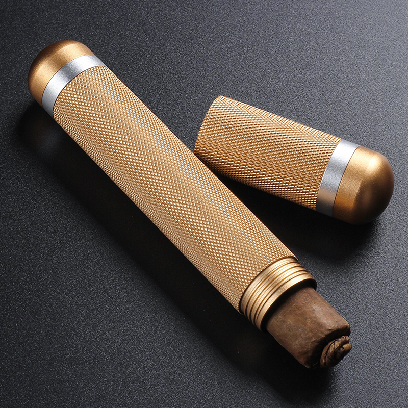 Aluminum Alloy Cigar Tube Single Cigar Cigarette Smoking Supplies Cigar Moisturizing Tube Moisturizing Cylinder Threaded Connector Portable