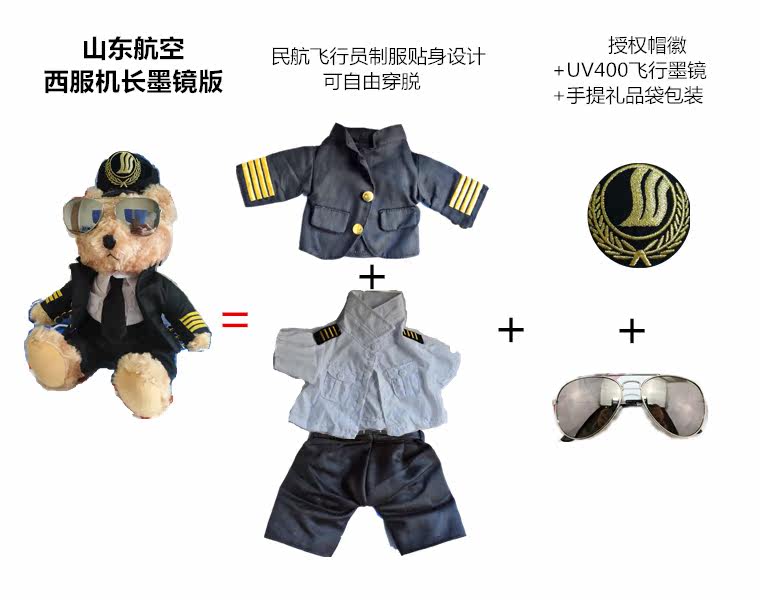 Shandong Airlines captain Xiong doll Shandong Airlines captain deputy captain co-pilot air less air security doll bear