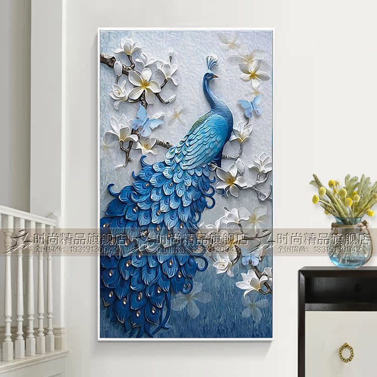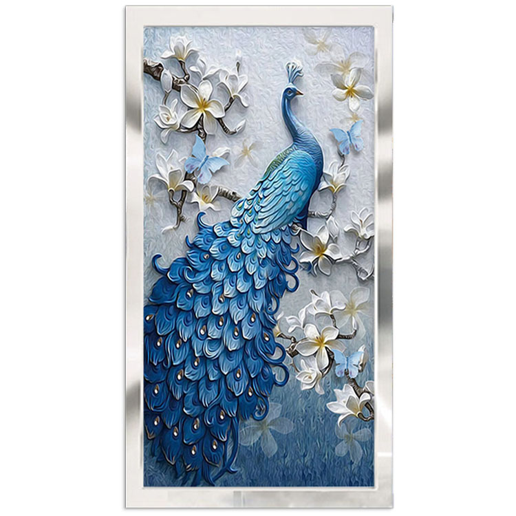 Art Glass Partition Living Room Modern Engraving Color Drawing Craft Glass Cabinet Screen Aisle Xuan Guan Background Peacock