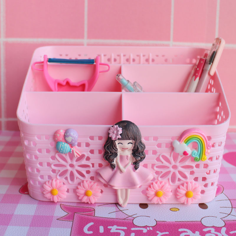 Cute cartoon desktop storage basket stationery sundries box multi-function finishing basket pen holder finishing rack storage rack