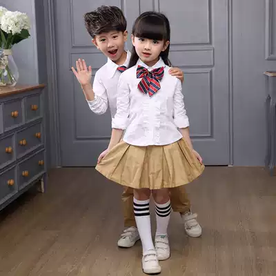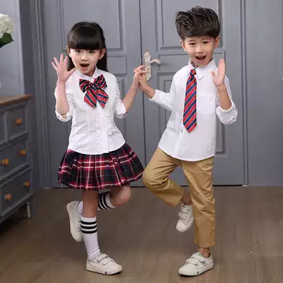 Blouse Red grid skirt collar Flower Men's shirt Navy pants Tie Men's shirt Khaki pants Tie Women's shirt Khaki skirt collar flower Navy vest Blouse Red grid skirt collar flower