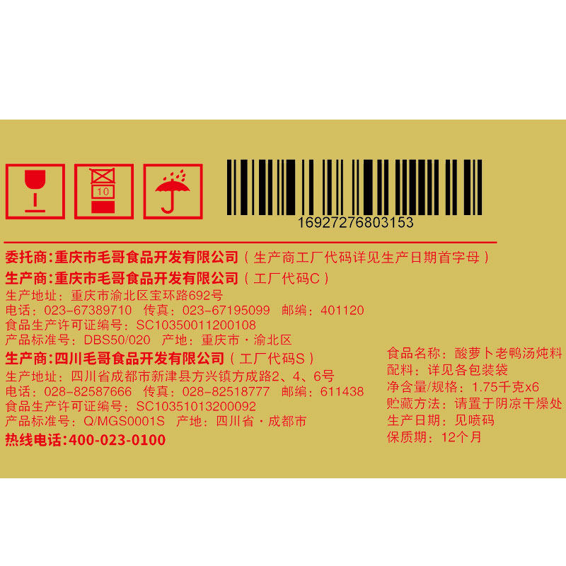 Chongqing Maotaic acid Luo Radish Old Duck Soup Stew 1 75kg * 6 bags Catering with clear soup hot pot paper ladle fish seasoning