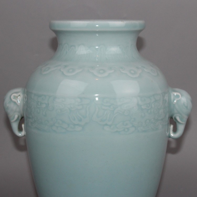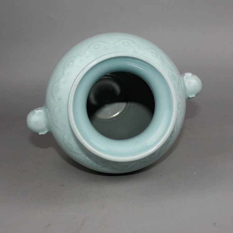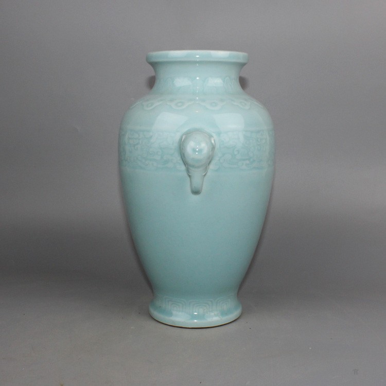 Clear Sky Blue Glaze Bronze Accessories Double Ear Bottle Single Color Glazed Antique collection Home Accessories Jingdezhen