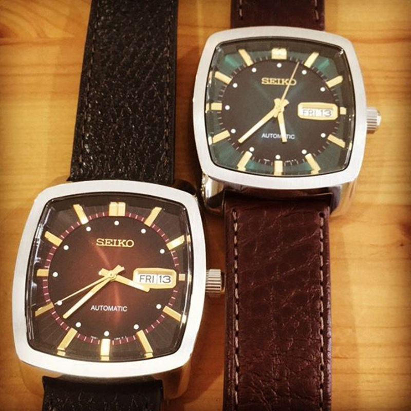 SEIKO Business Casual square green dial automatic mechanical belt male hand SNKP27