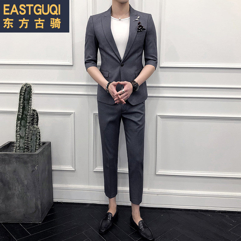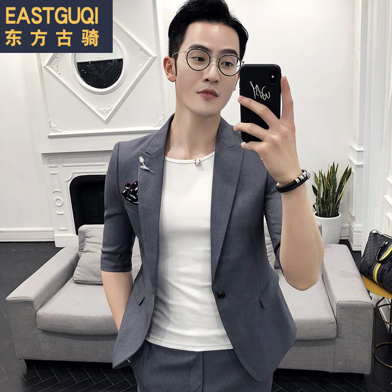 Summer coat hair stylist small suit men's slim half-sleeved short-sleeved three-quarter sleeve suit men's shirt suit medium sleeve thin tide