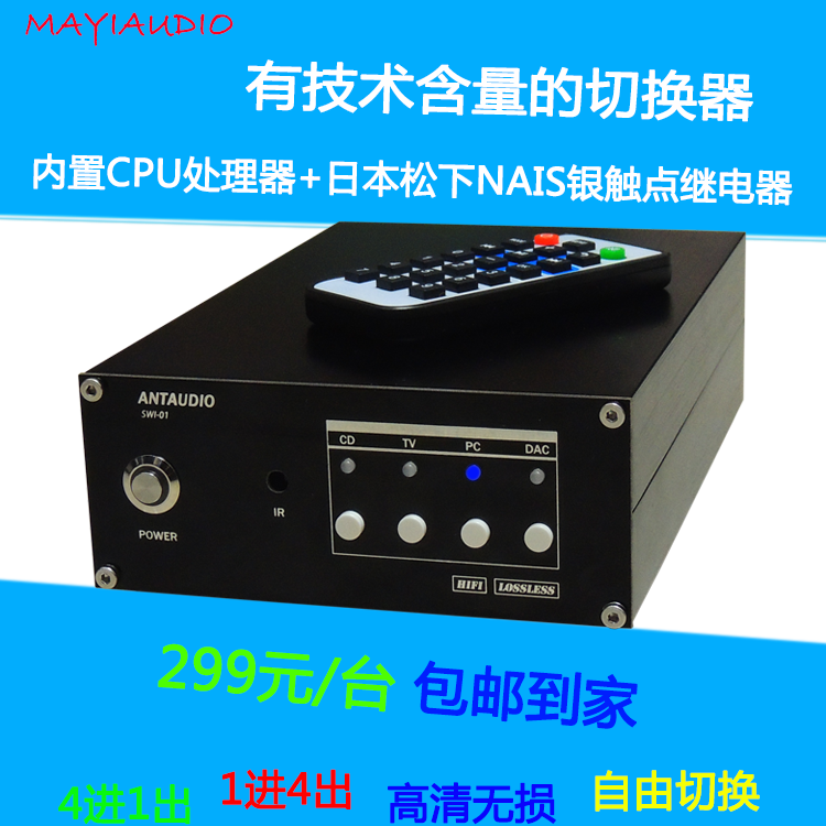 HIFI distortion-free fever 4-way 4-speed 4-in 1-out audio source switcher converter distributor remote memory