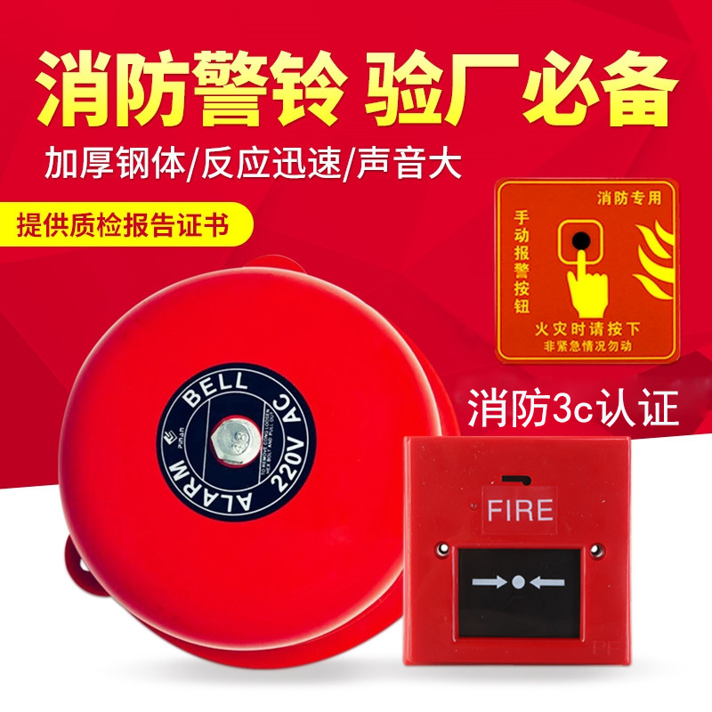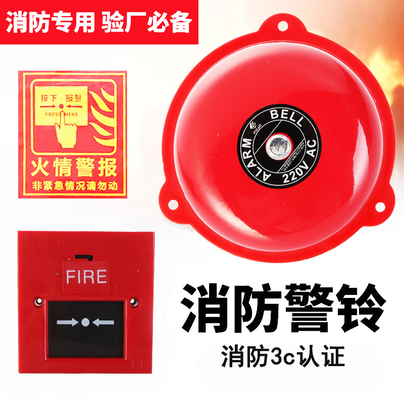 Square reset button fire 3c button 4 inch alarm bell set (connection 220v) 6 inch fire certification alarm bell set (connection 220v) sound and light alarm set (connection 220v) 4