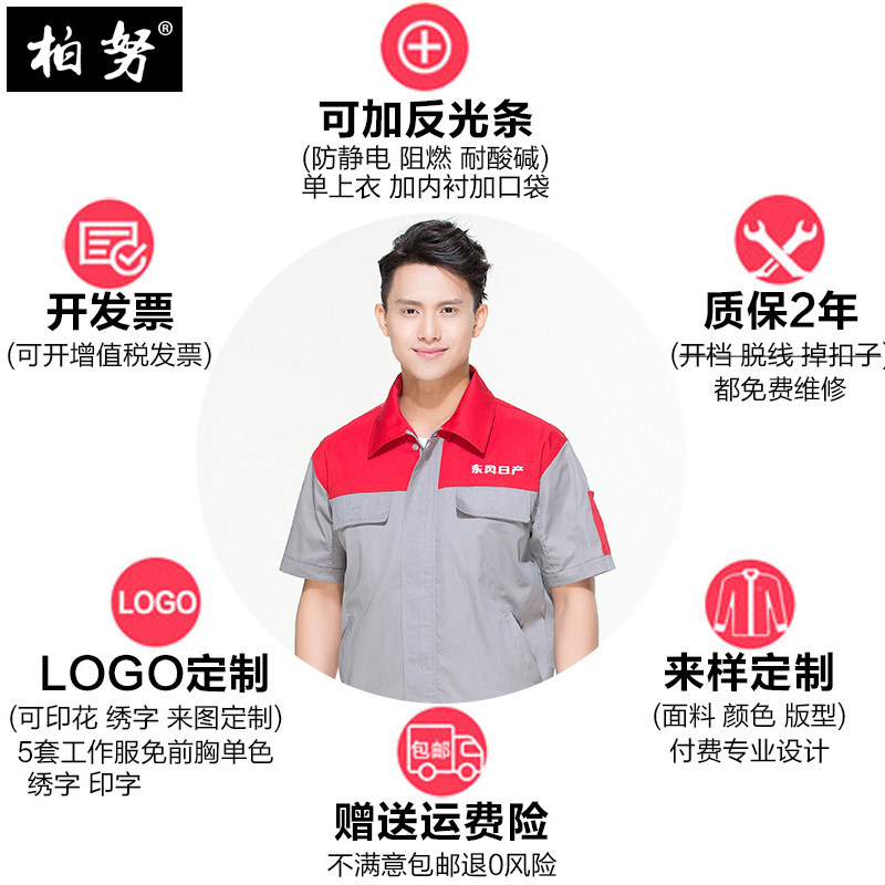 Dongfeng Nissan Working clothes suit men and women Summer cars 4S stores Short sleeves steam repair after-sales repair workshop Overalls