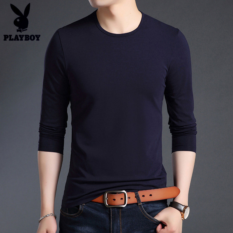 Playboy long-sleeved T-shirt men's cotton thin round neck inner autumn clothes loose white men's bottoming shirt autumn clothes