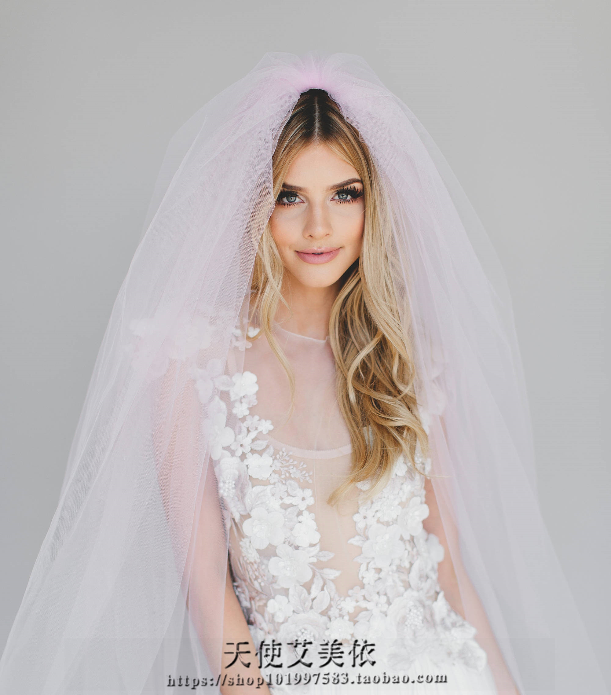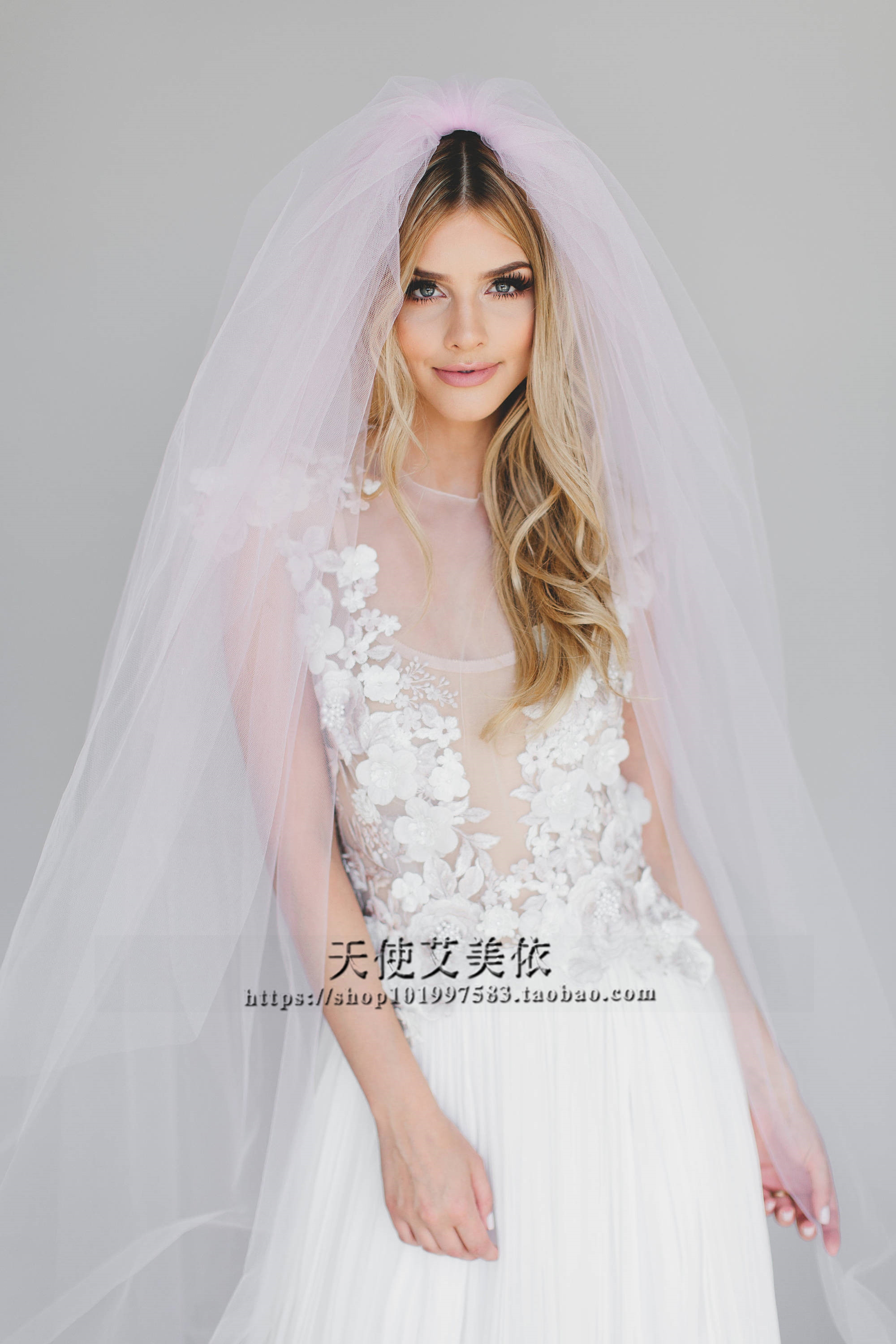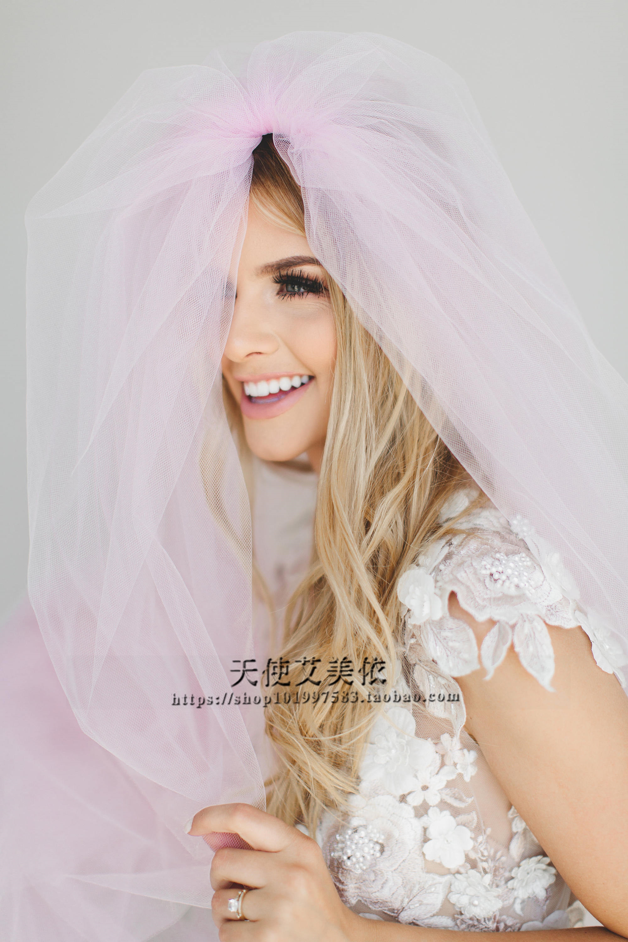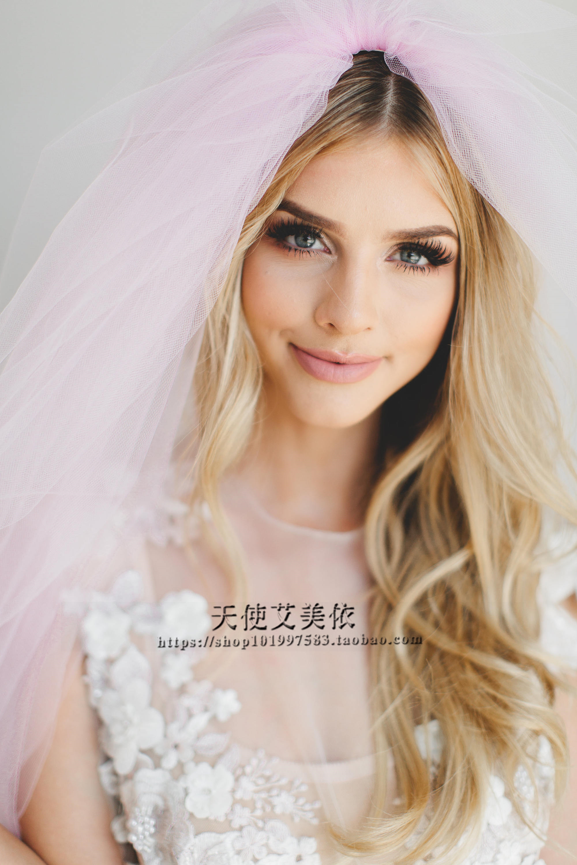 Romantic pink girl's heart veil short double-layer with comb bridal veil travel wedding photo with veil