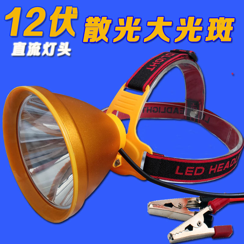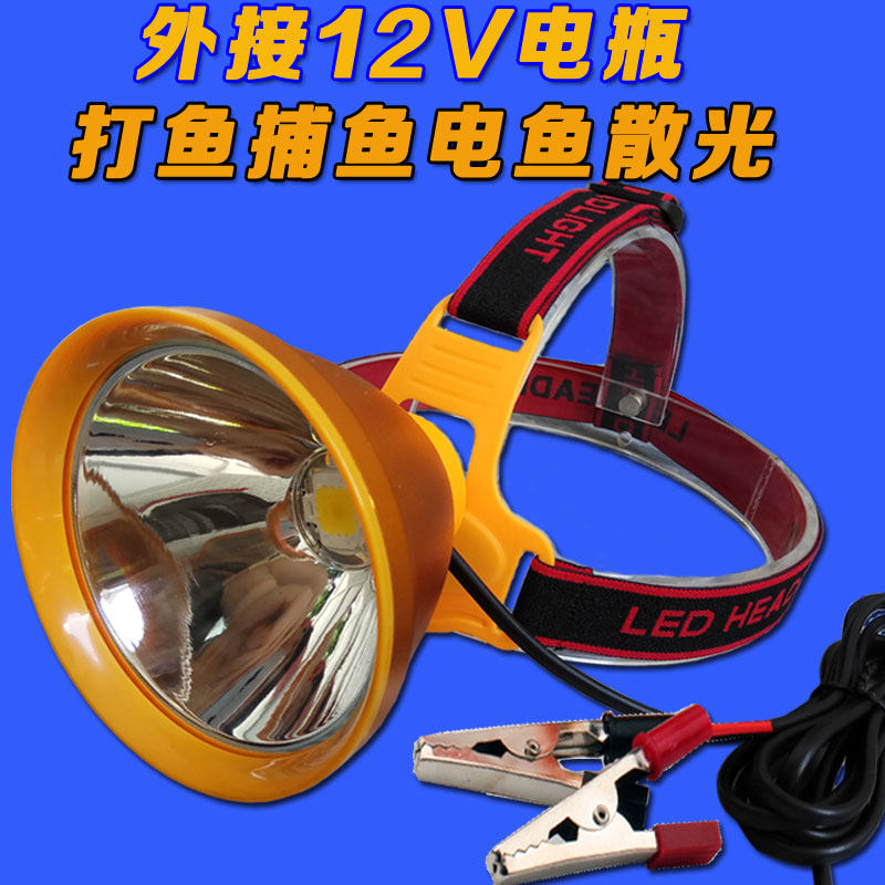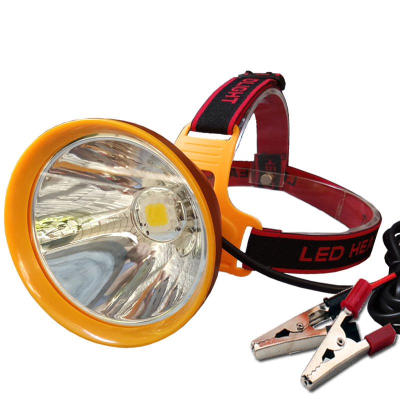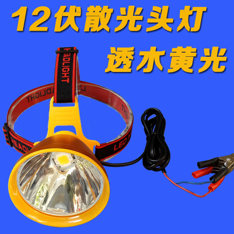 12V led astigmatism headlight super bright long-shot large aperture fishing fishing fish yellow light external clamp battery lamp head