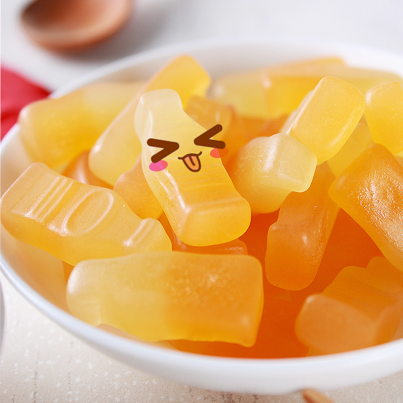 Maltose syrup White sugar Acetate Starch Fructose oligosaccharide 1%Pectin DL-malic acid Citric acid Food flavor Sodium citrate Caramel color (common law)Vegetable oil Carnauba wax