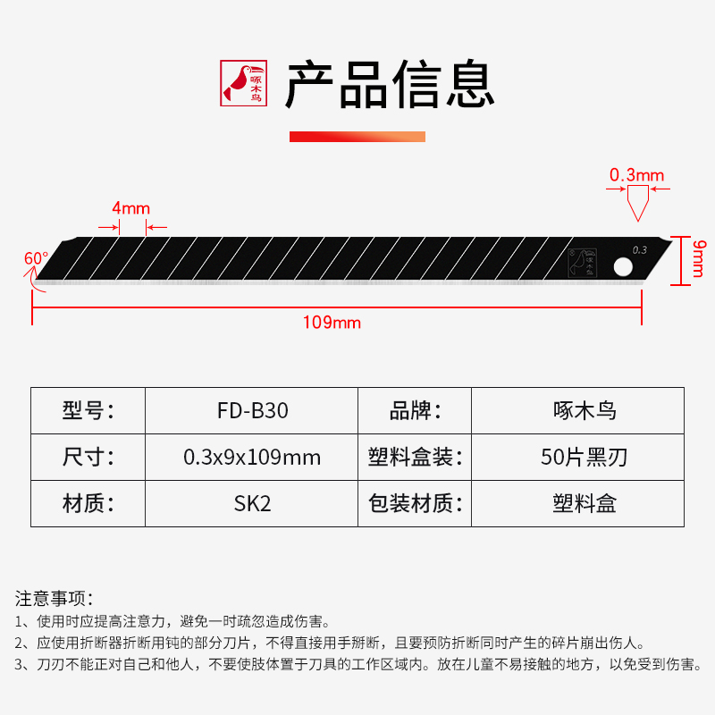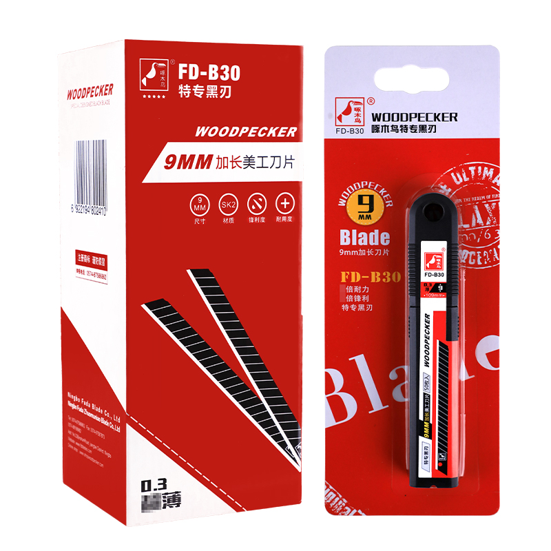Woodpecker blade FD-B30 small number 9mm lengthened ultra-thin 0 3mm full black beauty artificial knife sheet wallpaper wall cloth blade