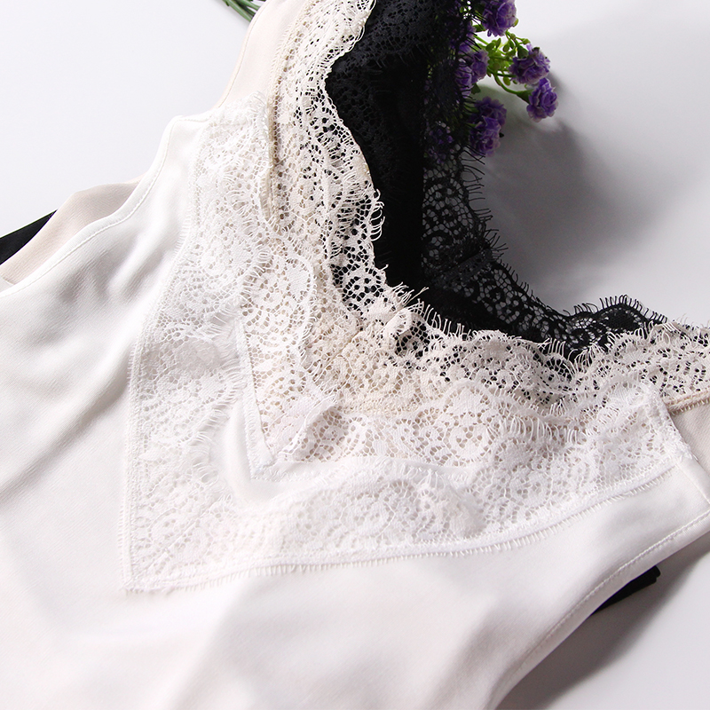 Knit Genuine Silk Vest Woman Summer Beating Bottom Outside Wearing 100 lap elastic body Skinny Sexy Lace Sleeveless Vest Harness