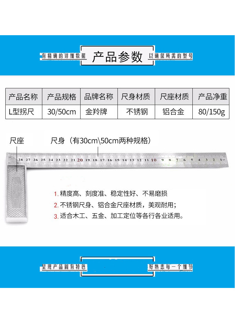Woodworking angle ruler 90 degrees big angle ruler Multi-functional decoration Universal large high precision stainless steel decoration industrial grade