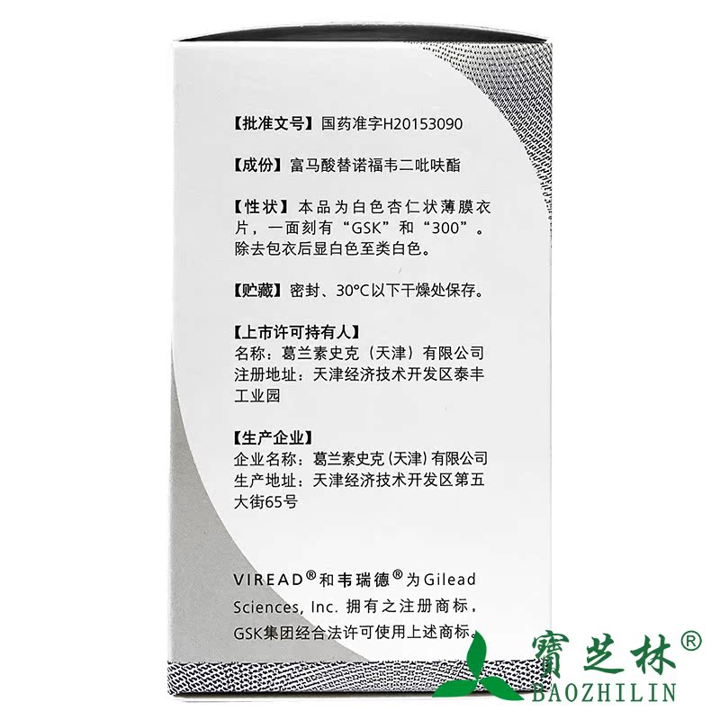 Viread veredfumarate tenofovir dipidoviroide sheet 300mg * 30 sheet box chronic hepatitis B