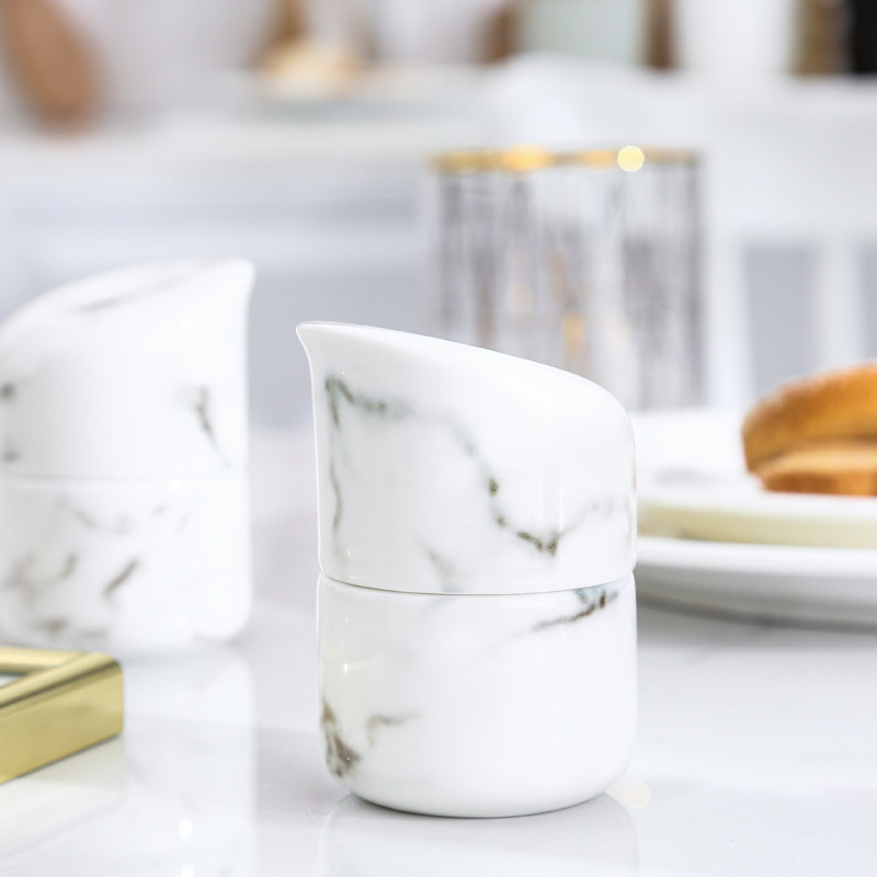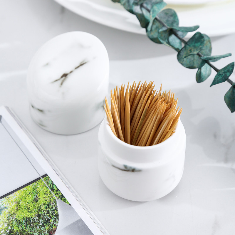 Ceramic toothpick box Fashion flip-up toothpick tube Nordic style dining table Ceramic Marble pattern toothpick jar