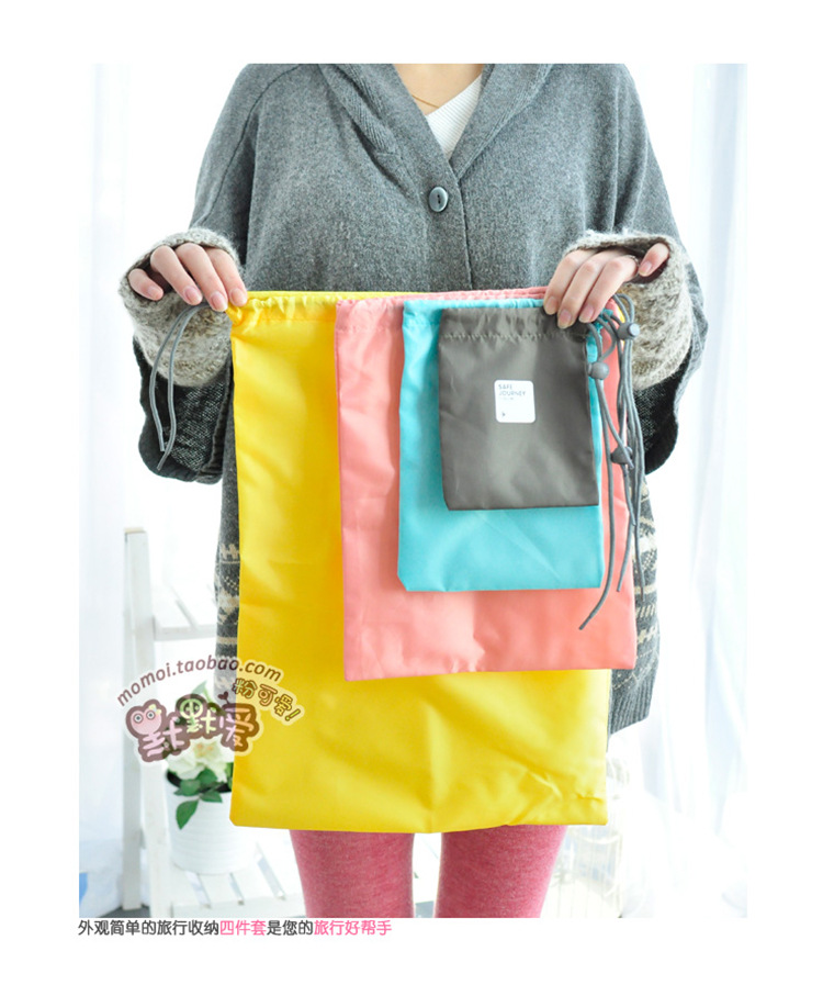 Travel minimalist Draw Rope Beam Pocket Small Cloth Bag Large Number Portable Candy Color Cashier Bag Four Pieces of Finishing Bag