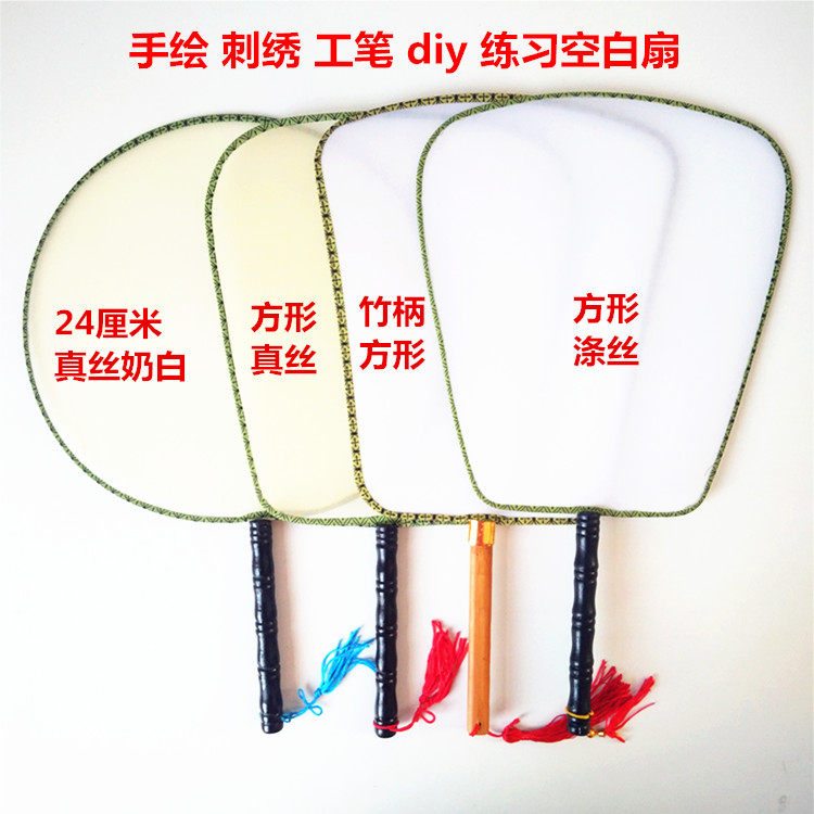 Blank fan group fan round fan palace fan kindergarten painting practice calligraphy diy embroidery cooked Juan alum glue silk craft fan
