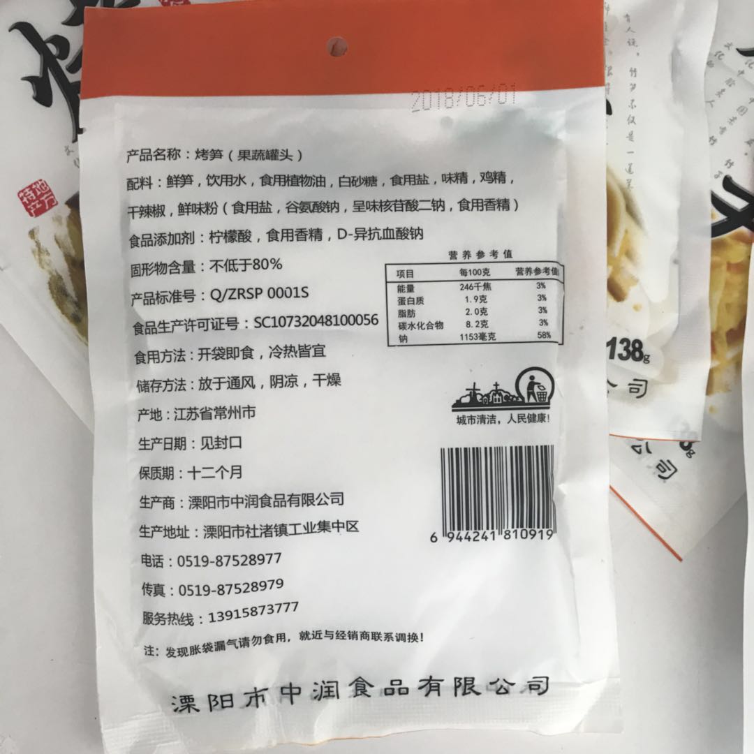 5 packs of Zhongrun roasted bamboo shoots 138g bags Liyang Tianmu Lake roasted bamboo shoots specialty bamboo shoots Spring shoots Winter shoots Stewed bamboo shoots in oil