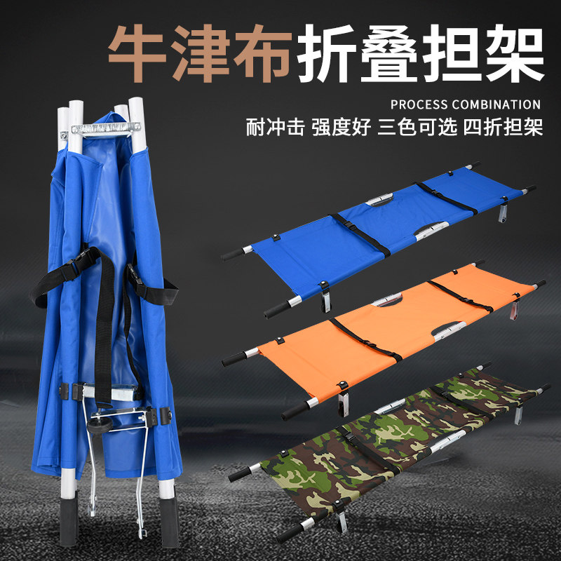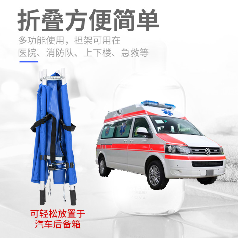 Hospital stretcher folding multifunctional thickened aluminum alloy stainless steel single frame simple stretcher bed family car pulley