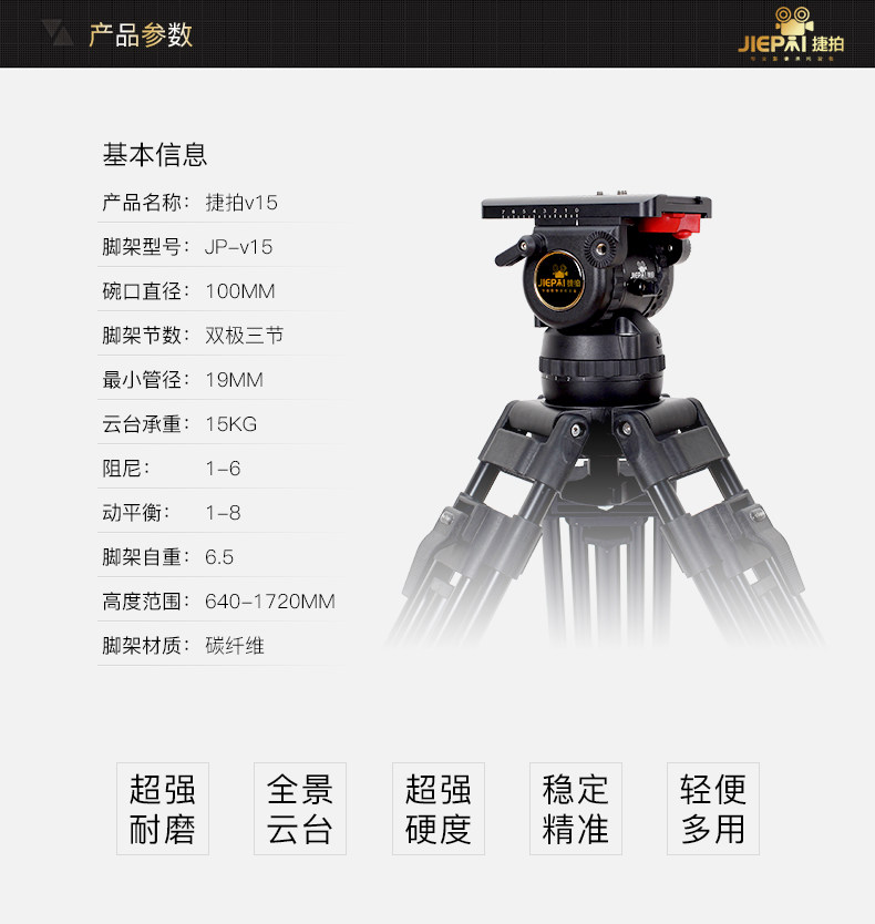 Quick shot JPv15T broadcast grade hydraulic head tripod set aluminum alloy set Quick shot v18T carbon fiber