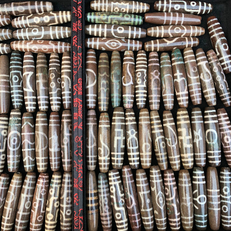 Tibet Xiangxiong Tianzhu Tibetan old Tianzhu various totems full of cinnabar old pit old material shale sky falling stone